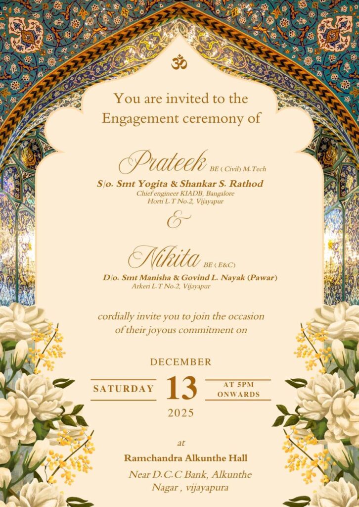 S/o. Smt Yogita & Shankar S. Rathod, Chief Engineer, KIADB, Bangalore; Horti L.T No. 2, Vijayapur